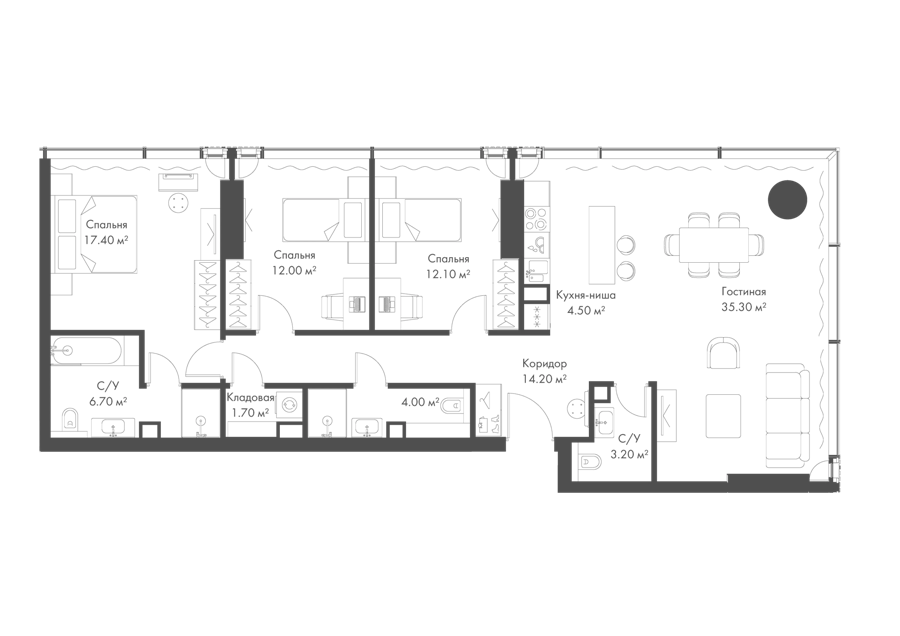 Высота потолков до 3,28 метра и панорамное остекление с пониженной теплопроводностью