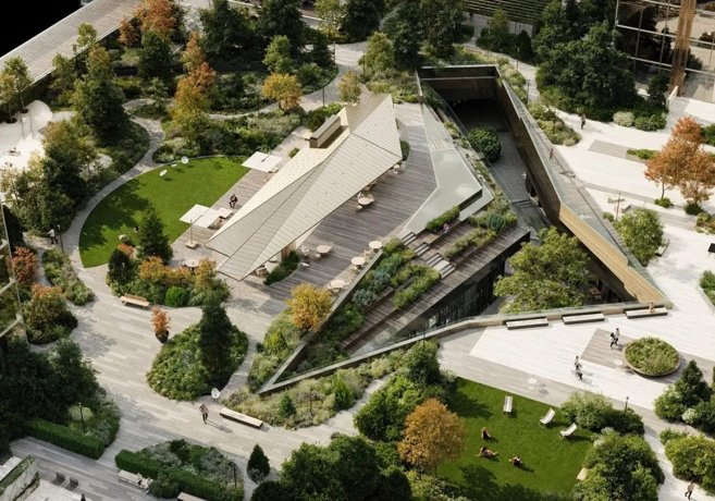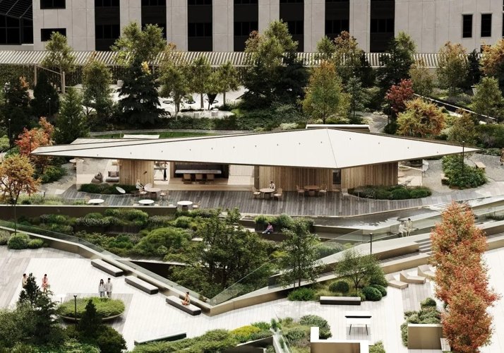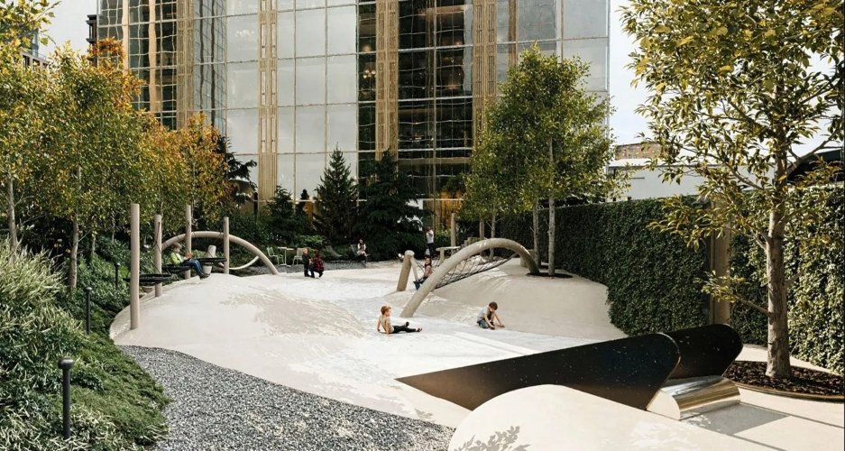Искусство в каждой детали. Лобби с лаунж-зонами и переговорными — это не просто вход, а продолжение вашей гостиной. А представьте себе закрытый двор-сад на кровле стилобата площадью 7 700 кв.м