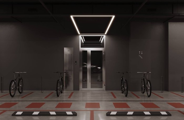 Проблема парковки в центре решена радикально — огромный подземный паркинг. А внизу же расположены и индивидуальные келлеры, куда можно убрать сезонные вещи, велосипеды или запасы.