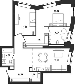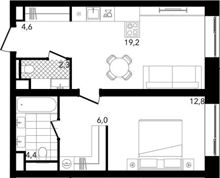 Площадь от 33.46 м2