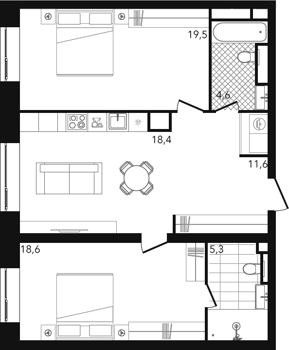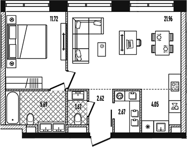 Площадь от 26.86 м2