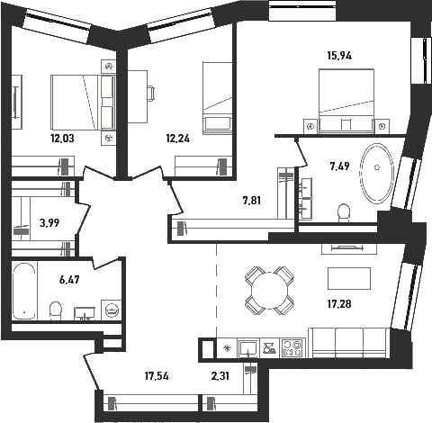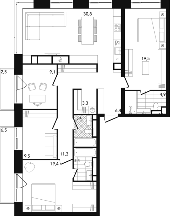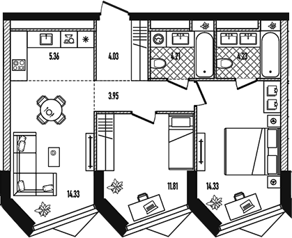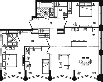 3Е-комнатные