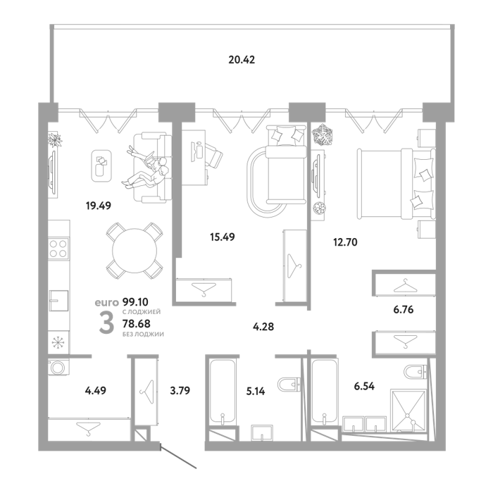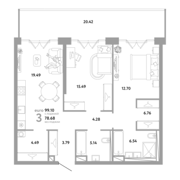 Площадь от 78.24 м2