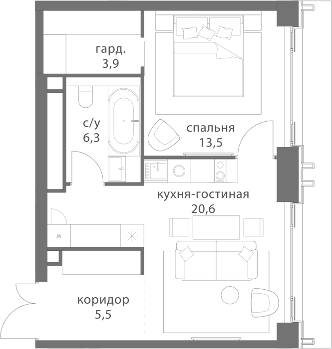 Детские и спортивные площадки выполнены в эстетике, не нарушающей общей гармонии. Половина территории отдана под зеленые насаждения — ваш личный кислородный цех в центре мегаполиса.