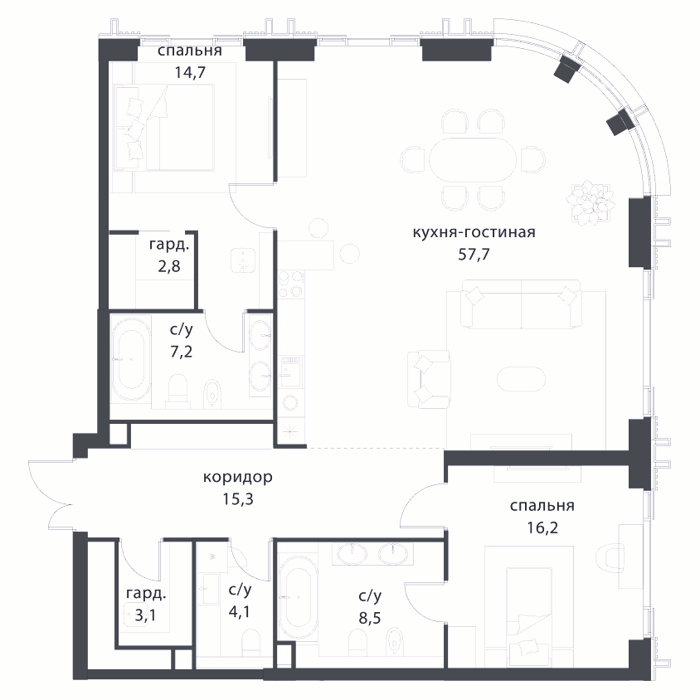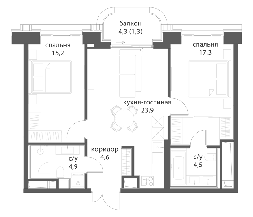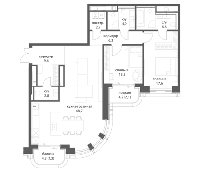 Каждый лот уникален. Высота потолков создает ощущение воздуха, а панорамные окна «в пол» стирают грань между интерьером и вечным городом за стеклом.