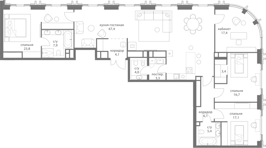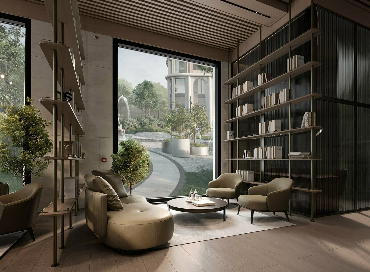 Собственный кинотеатр, сигарная и лаунжи. Для интеллектуального досуга — библиотека и репетиторские. Бьюти-румы, коворкинг и переговорные. Отдельные сьюты для гостей и игровые залы и пространства для развития детей.