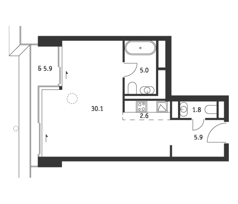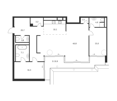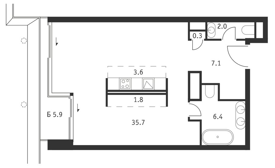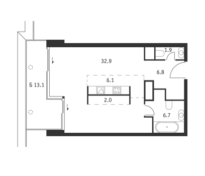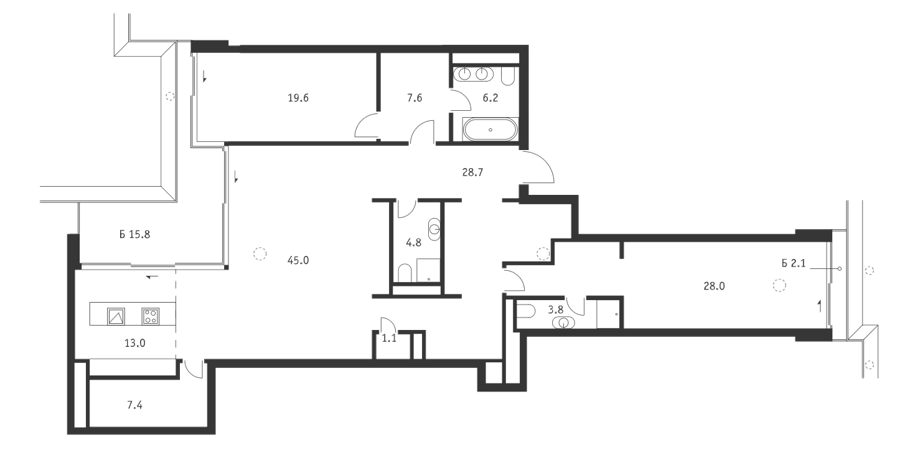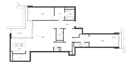 Площадь от 45.8 м2