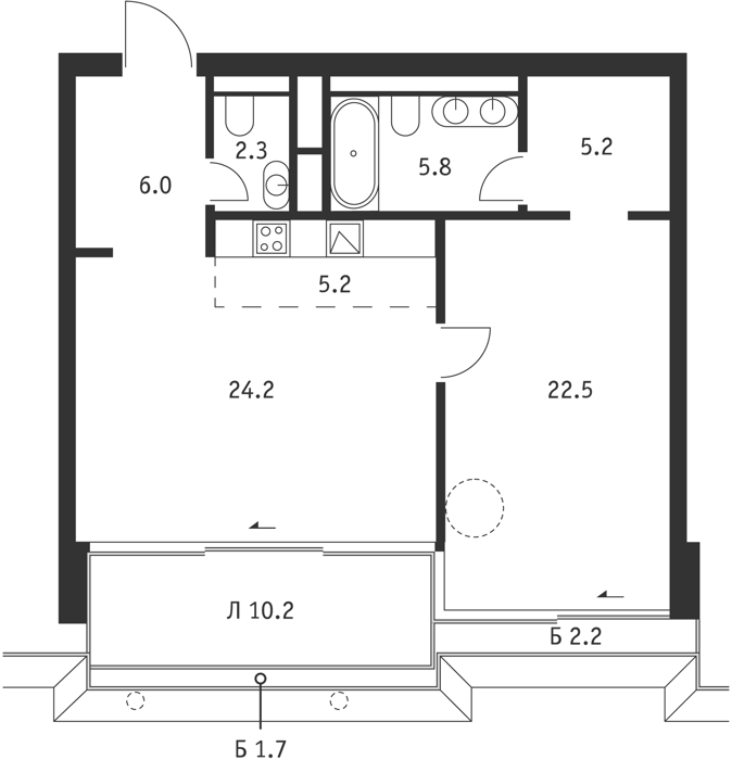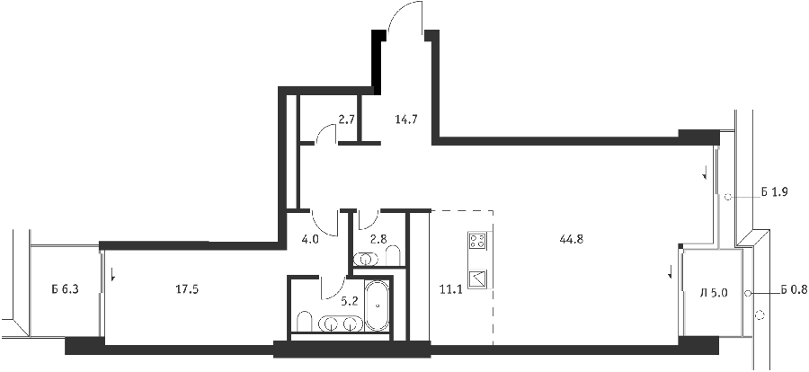 Площадь от 47.2 м2