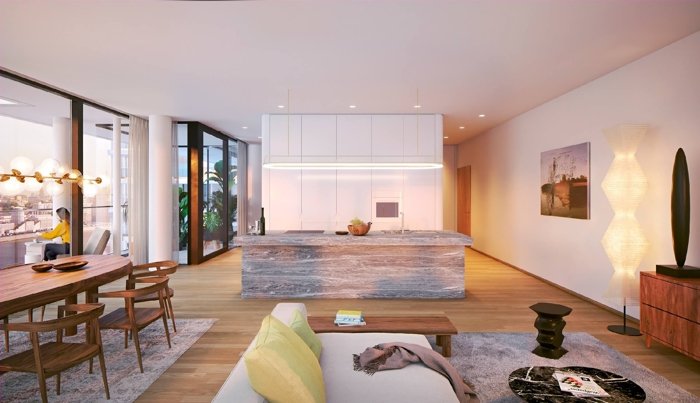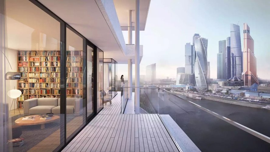 Панорамное остекление, монолитные балконы-галереи, виды на Москву-реку, «Москва-Сити», гостиницу «Украина» и Белый дом. Окна ванных комнат выходят на исторические памятники — здесь каждая деталь продумана для эстетического наслаждения.