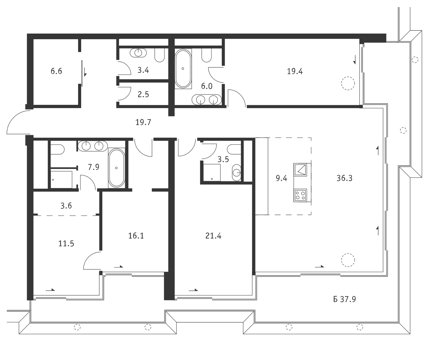 Площадь от 115.6 м2