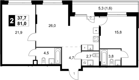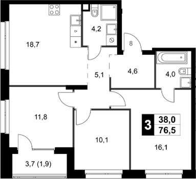 Площадь от 76.5 м2