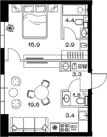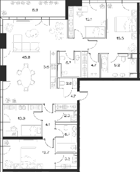 Площадь от 45.3 м2