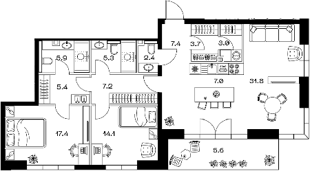 Площадь от 67.2 м2