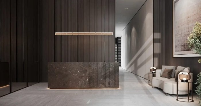 Это арт-пространства с мягкими зонами ожидания, озеленением и стойками ресепшн, задающие тон всей вашей жизни в этом доме.