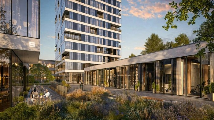 Внутри квартала, в трёх одноэтажных павильонах, спрятанных между башнями, есть всё, что нужно для жизни, работы и отдыха, не покидая территории.